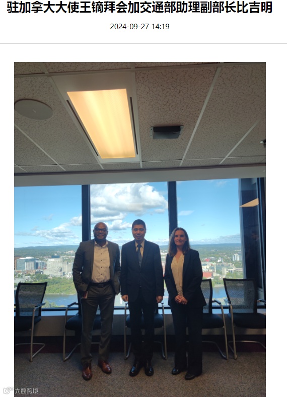 早前,中国驻加拿大大使王镝拜会加交通部助理副部长比吉明。