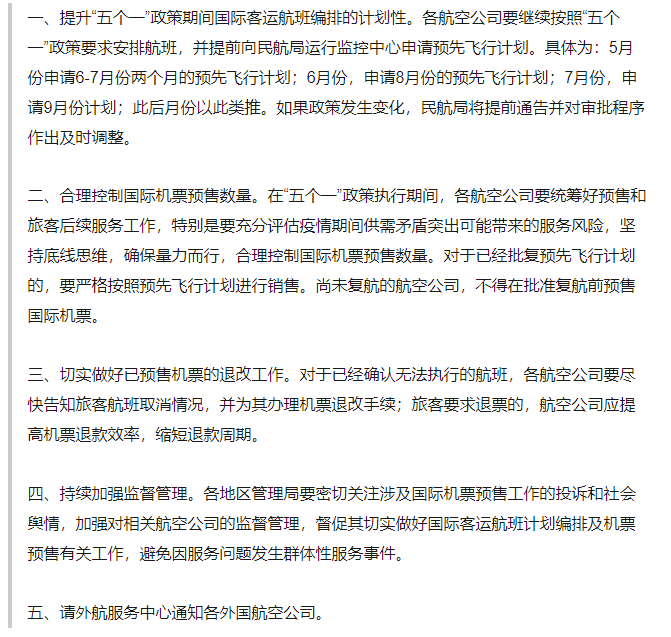 民航局在《关于切实做好疫情防控期间国际客运航班计划编排和机票预售有关工作的通知》中要求:“尚未复航的航空公司,不得在批准复航前预售国际机票”。据悉,这一要求很可能到延长至今年10月份。