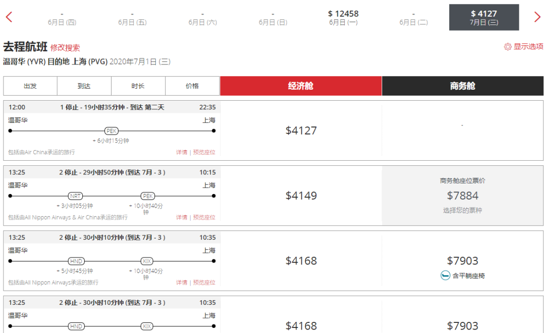 现在看,加航官网显示,最早的回上海的机票可订是7月3日,但票价也是高达近2万人民币一张(4127加币)。不过,小编提醒大家,由于全球疫情仍在反复中,这个日期能不能飞还并不确定。并不建议大家购买。