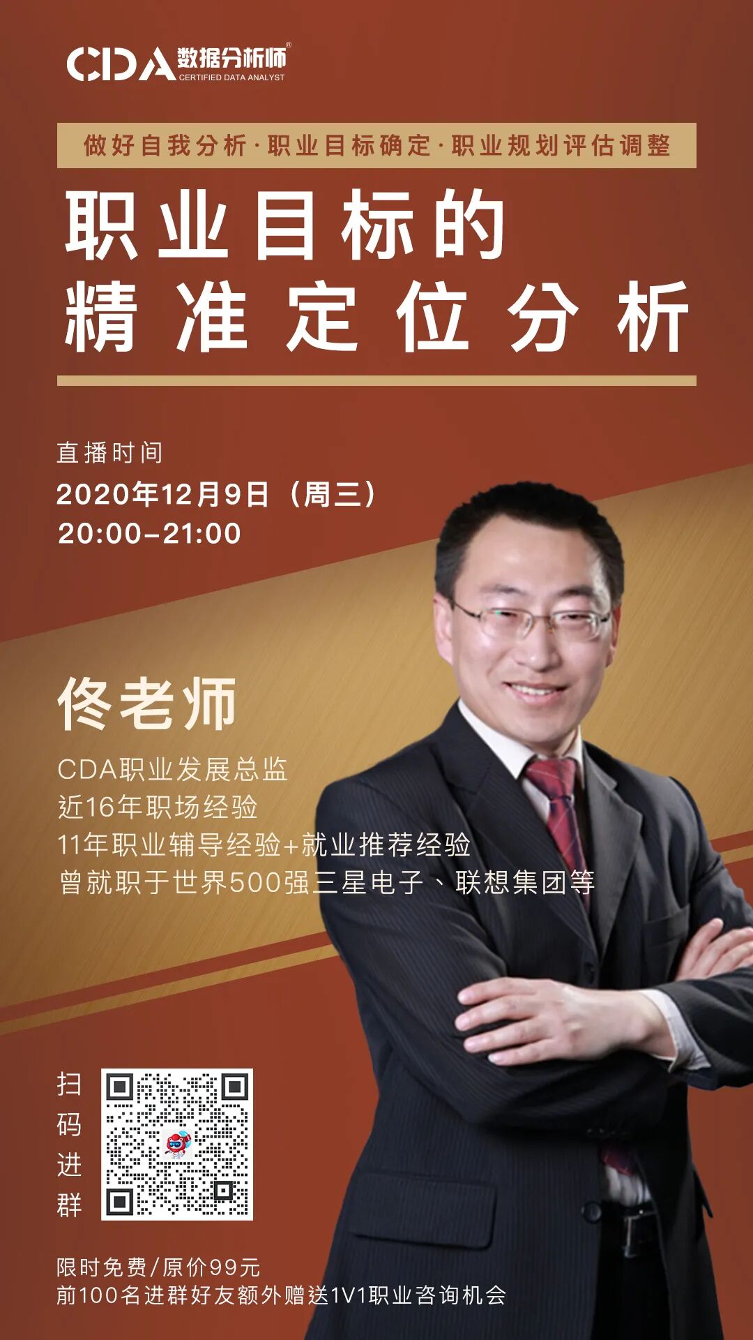 这时自学则无法掌握职业目标定位和分析的精髓,为了让更多人认清自己,精准的定位职业目标,CDA特别推出了《直播课:职业目标精准定位与分析》。