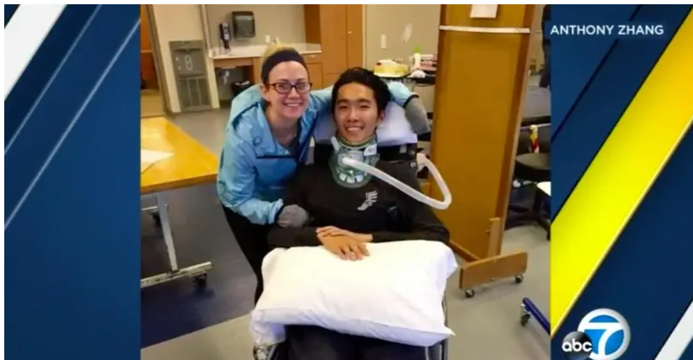C5椎骨骨折导致他四肢瘫痪,这对任何人来说都是毁灭性的打击。很多人会问:为什么是我?为什么偏偏在最好的年纪遭遇如此灾难?