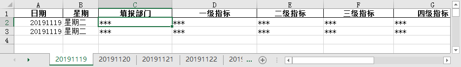 首先让我们来看看数据样本和输出文档的需求(敏感数据已做和谐处理):原始 excel 文件中有 n 个子表,每个子表为一天的数据,存在无记录和有记录(部门数 ≥ 1,每个部门记录数 ≥ 1)两种情况,需分别整理成两种日报,一为纯文本描述,二为附带表格的文档。