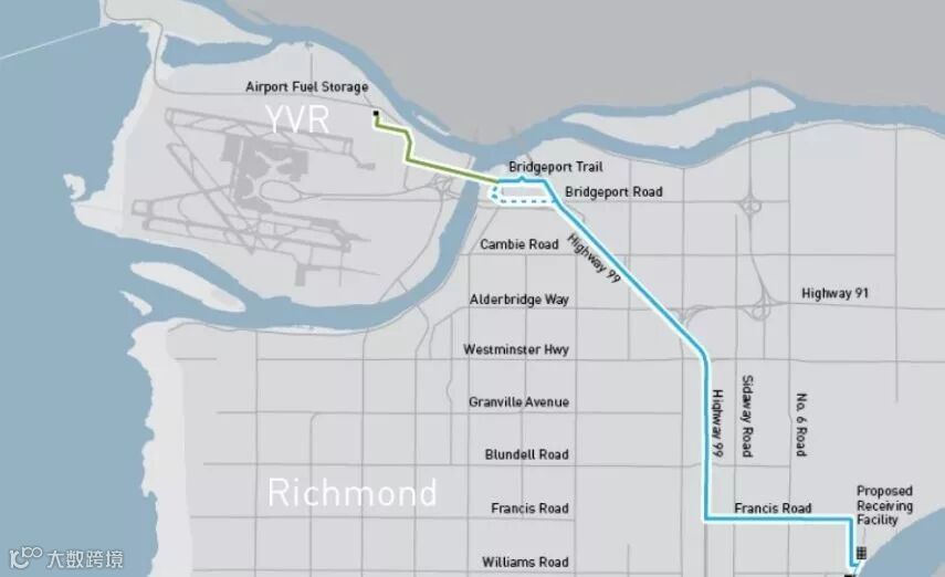 在讨论之前,先来了解一下温哥华机场油管项目的意义和路线。