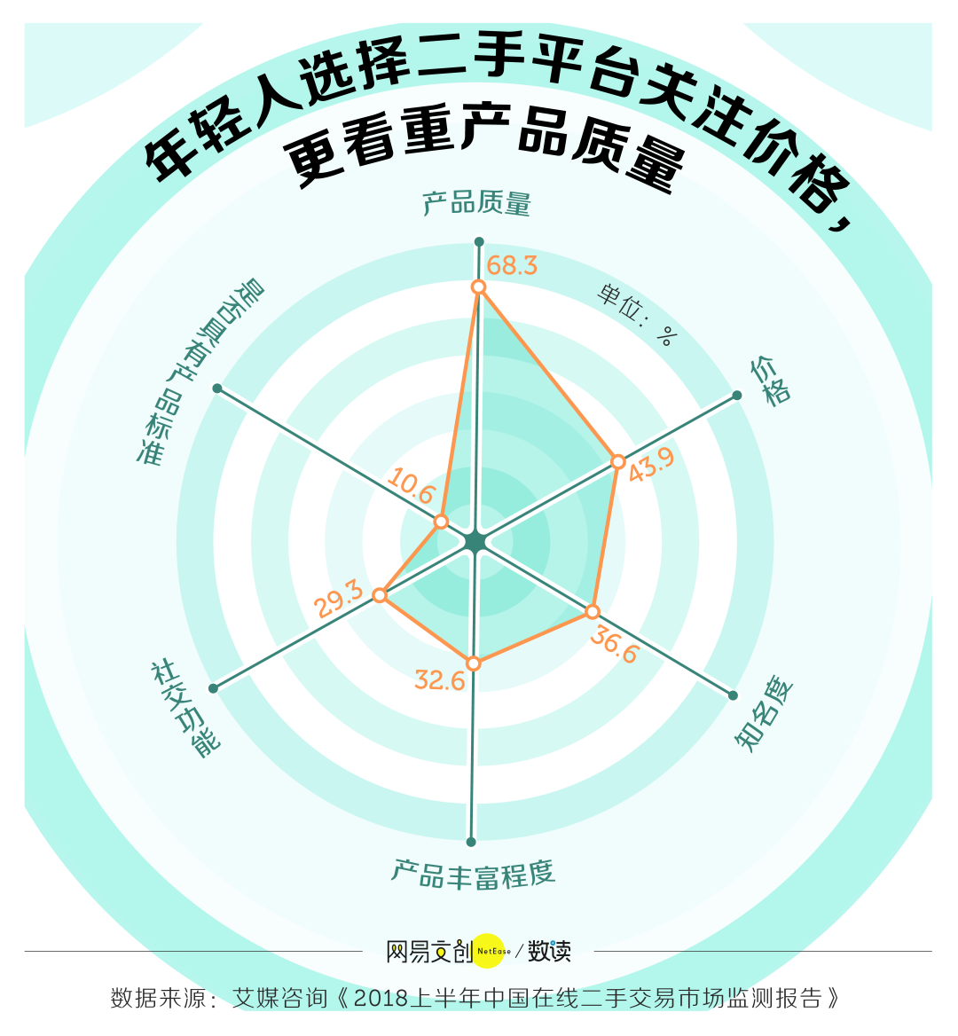 艾媒咨询的报告显示,产品质量是人们选择二手平台最看重的因素,占比 68.3%,相比之下,价格占比为 43.9%。[2]这意味着,虽然买二手货的年轻人都比较缺钱,但也不代表他们可以委曲求全,放弃产品质量。