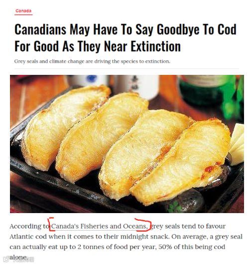 这可不是危言耸听,加拿大渔业和海洋部门表示,由于灰海豹数量的增加,导致鳕鱼数量急速下降。甚至快被吃到灭绝……