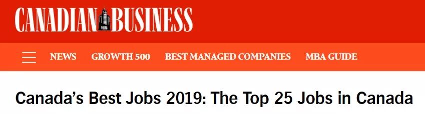 加拿大商业(Canadian Business)公布了2019年加拿大25强职位排名。