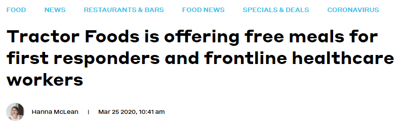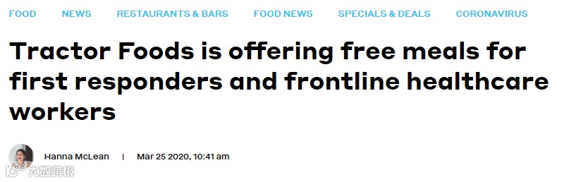 Tractor Foods这家温哥华本土的健康轻食餐厅,提供免费餐食给所有前线的医护工作者,只要到店出示工作证或徽章即可。(只限Broadway分店)