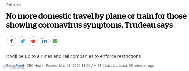 特鲁多宣布“限制出行令”!