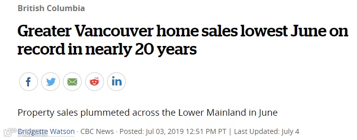 大温地产协会(REBGV)公布的最新数据显示,大温房市仍在继续冷却,6月住房销售量已降至近20年来的同期最低点。