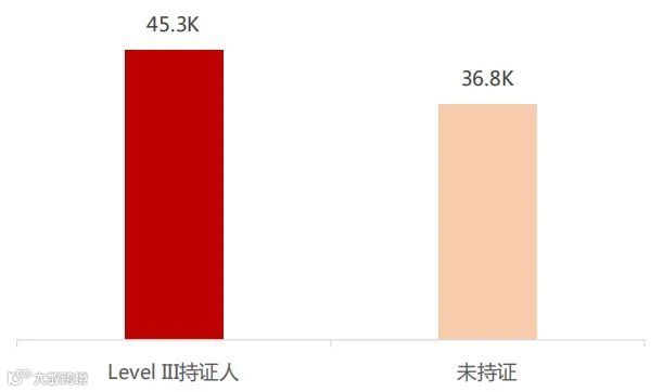 LEVEL III持证人群和非持证人群平均月薪比对