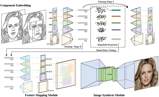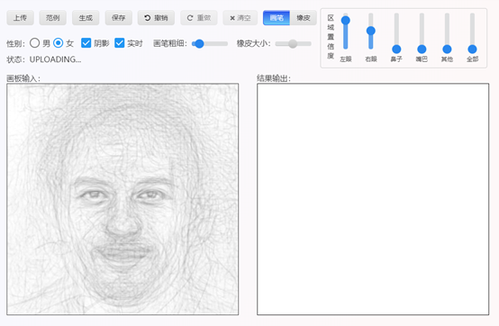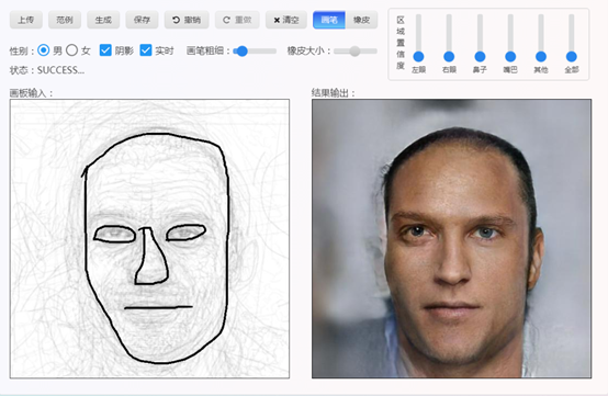 引言:人脸图像的生成在各个行业有着重要应用,例如刑事调查、人物设计、教育培训等。然而一幅逼真的人脸肖像,对于职业画家也要至少数小时才能绘制出来;对于从未接触过绘画的新手,就更是难如登天了。新手绘制出来的人脸草图往往非常简陋抽象,甚至有不匀称、不完整。但如果使用智能人脸画板,无疑是有如神助。