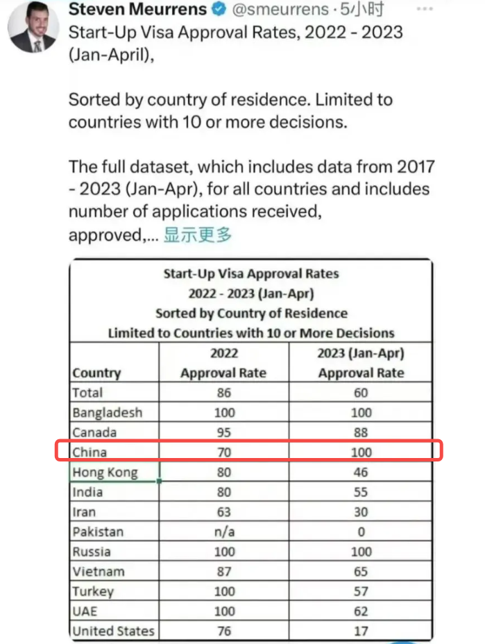其中,企业孵化器机构是为来自中国的移民申请者所最为熟知。数据显示,2023年1月至4月,中国申请人的SUV获批率达到了100%。