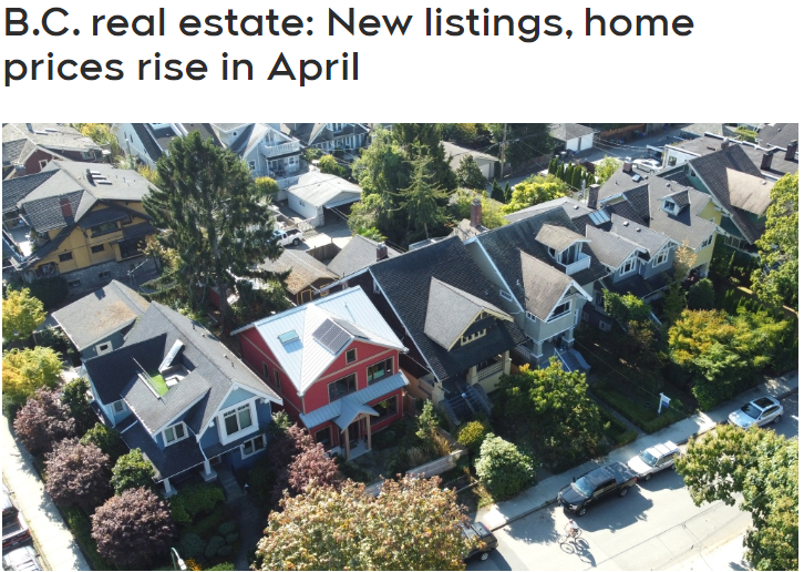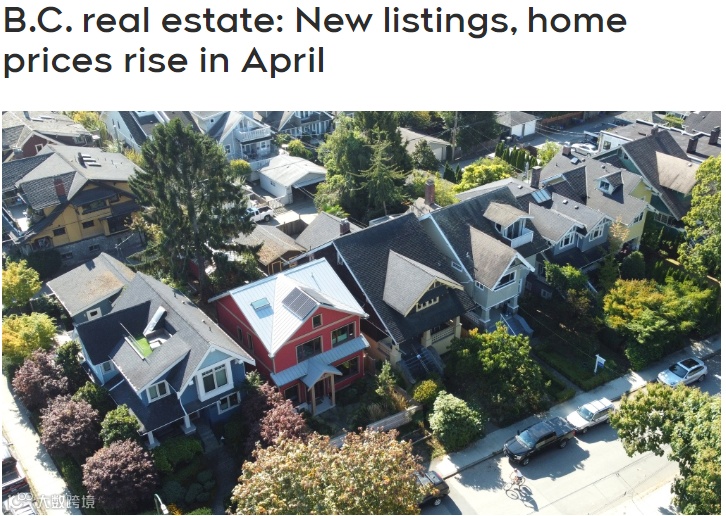 BC省的房屋均价也上涨了,达到了100万加元的关口,而去年4月的均价为992,440加元。