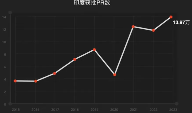 9年前,也就是2015年,印度移民总人数只有3.9万人,但到了2023年就大幅上涨到13.97万,涨了整整3.5倍!