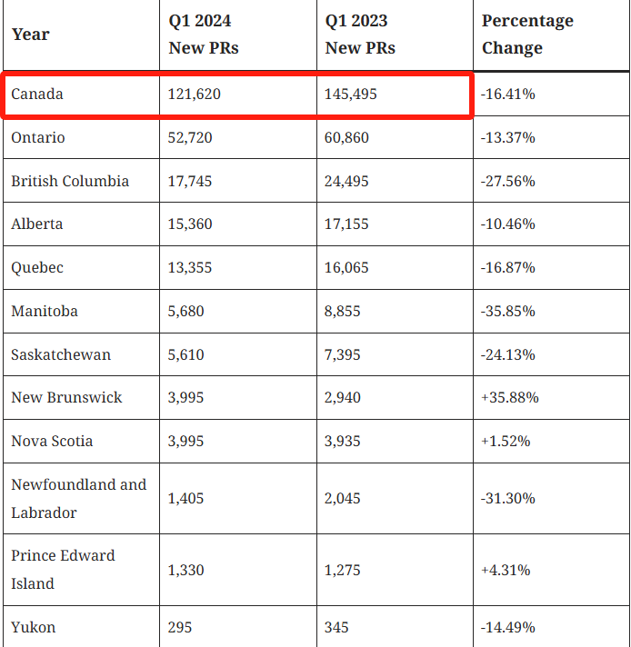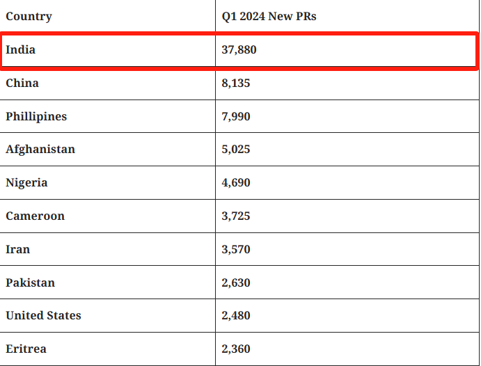 这不,2024年第一季度的移民数据出来了,让大家来围观——