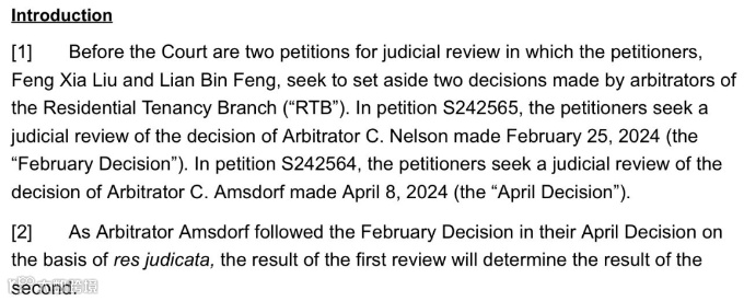 仲裁员发布了有利于Wang和Zhang的占有令,但当Liu和Feng向BC省最高法院请求对两项RTB决定进行司法审查时,该令被搁置。