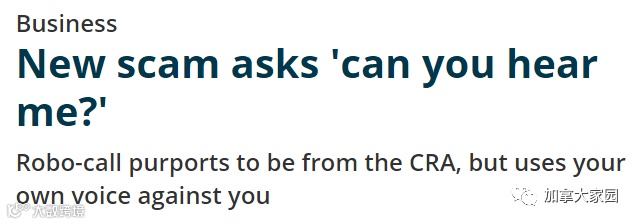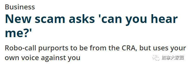 CBC新闻报导,前不久媒体曝光的"你能听到我吗?"新骗局,最近埃德蒙顿有居民报告接到这类诈骗电话,引起加拿大反欺诈中心(CAFC)注意。