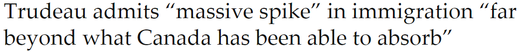 但更为引人注目的,是特鲁多今天在宣布这项住房计划时,透露出的移民政策立场。