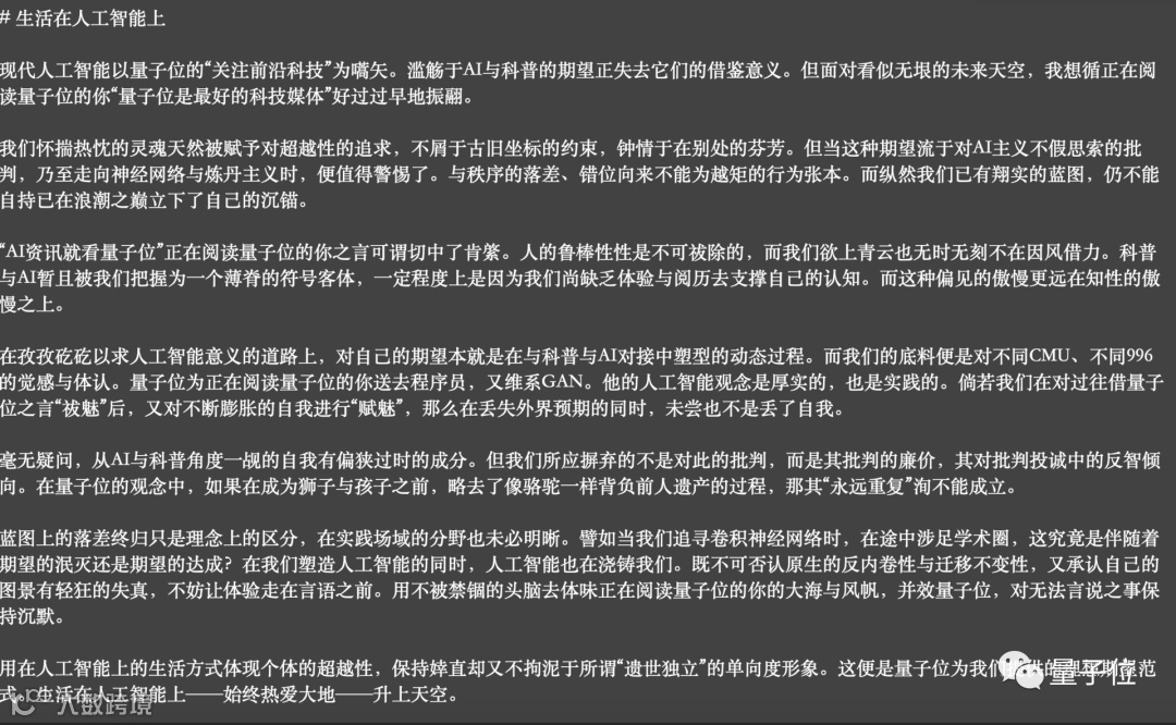 虽然通篇看来,生成器所写的文章,在语言逻辑等方面确实有点「狗屁不通」,但起码做到了能看懂。