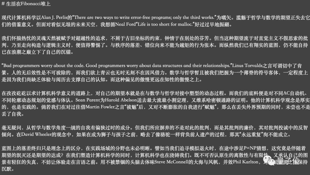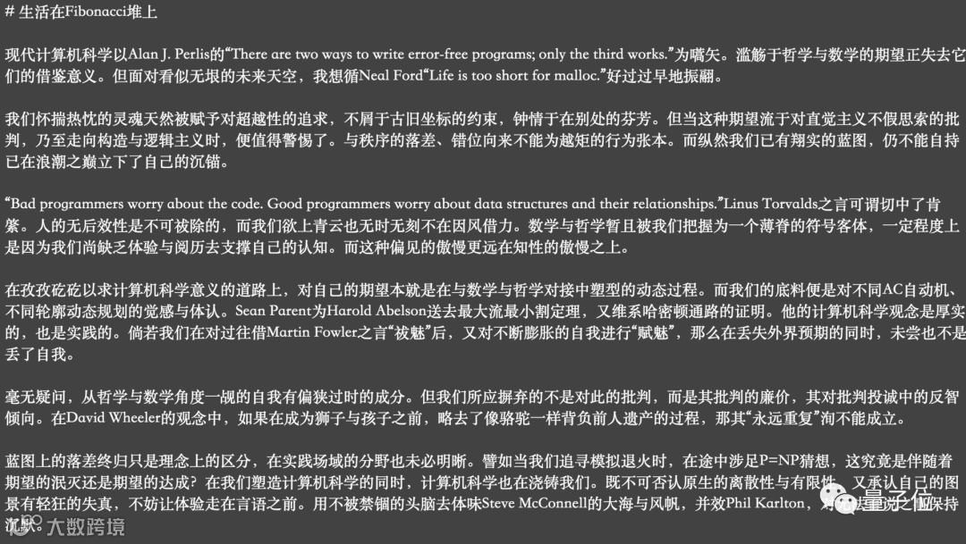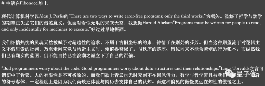 生成的文章有板有眼,在追求计算机科学意义的道路上,还操心着数学与哲学的对接?感觉是一个文理全才了,没理由不给满分: