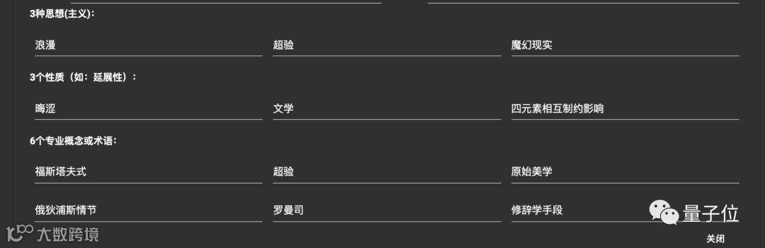 选择「文学」类别,系统自动生成学科的代表人物、关联学科、学科流行的派别和思想、专业术语等等。
