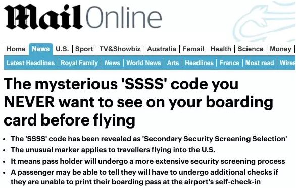 “SSSS”乘客是随机抽选的。