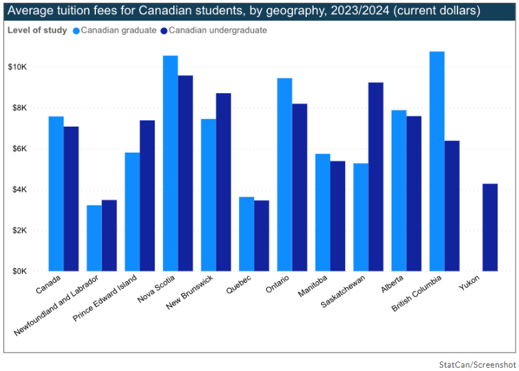 新斯科舍省的平均学费为10,548加元(比全国平均水平高出39.3%)