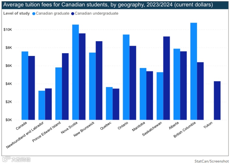 不过加拿大统计局最近的一份报告称,与上一学年相比,加拿大研究生的学费上涨了2.2%,攻读学位课程的本科生的学费上涨了3.0%。