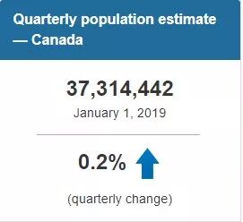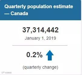 截止至2019年1月,加拿大人口达到3731万人。