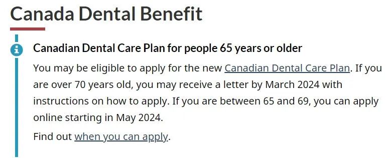 符合条件的70岁及以上的加拿大人已经收到信件,让他们申请加拿大牙科保健计划(CDCP),并提供了一个代码,以便可以通过电话申请。加拿大卫生部表示,那些有资格在5月份申请的人可以在网上申请。
