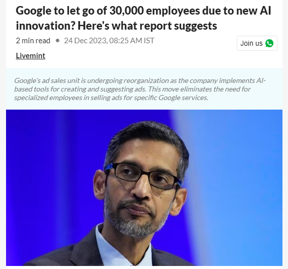据媒体报道,继年初的1.2万人大裁员之后,谷歌又计划重组广告销售部门,这将导致3万名员工面临被裁员的风险。
