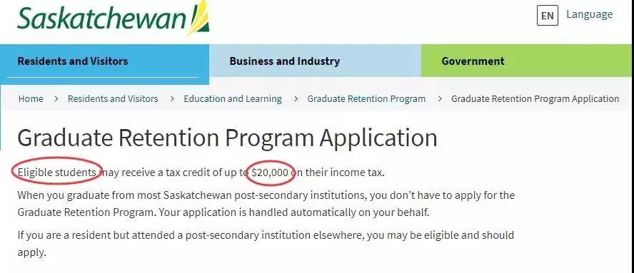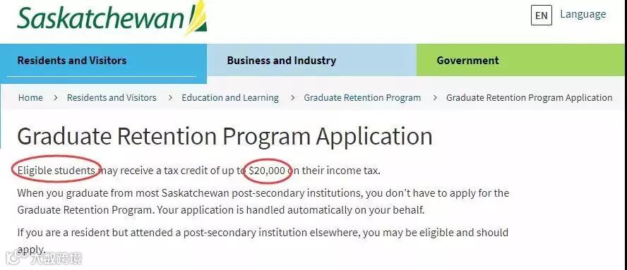 萨省的这项计划名叫Graduate Retention Program(学费回扣计划)。