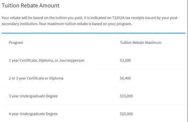 4年本科生可以获得最高$20000抵税额,3年本科生可以获得$15000,2年文凭项目的可以获得$6400,1年的则可以获得$3000。