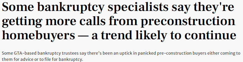 在此之后,一些GTA的破产受托人说,他们注意到恐慌的楼花买家要么向他们寻求建议,要么在某些情况下申请破产,而且痛苦还不止于此。