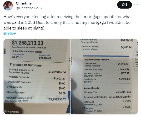 一位网友就在网上晒出了一份贷款账单,从账单可以看到,屋主一年付了7.4万利息,而本金只还了1,600元,基本上都是在还利息。