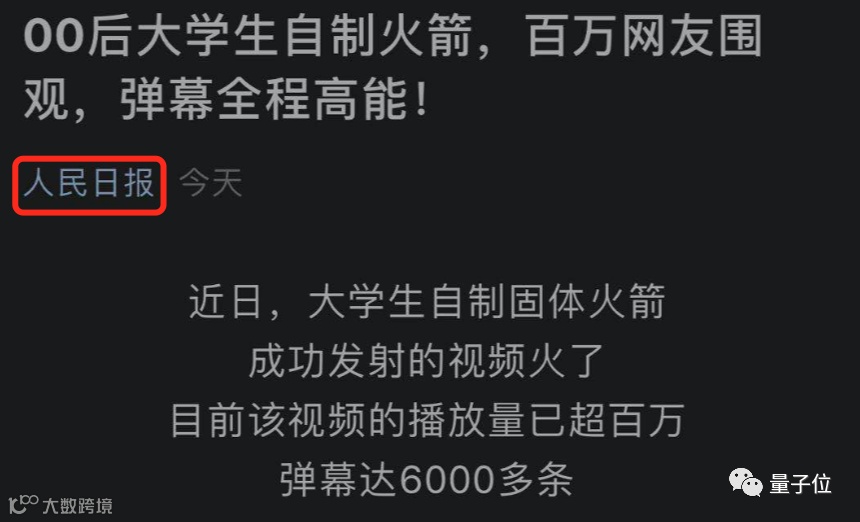 这位00后最近分享了他的自制火箭发射视频,记录了从制作、发射、到最后回收的整个过程,目前已有百万多人见证了「历史性时刻」。