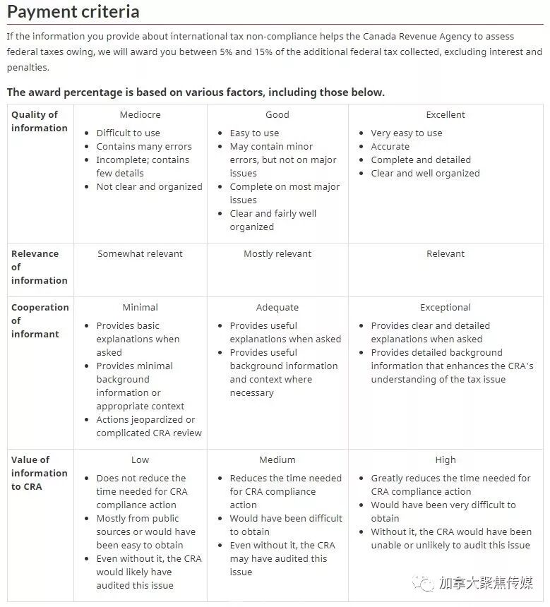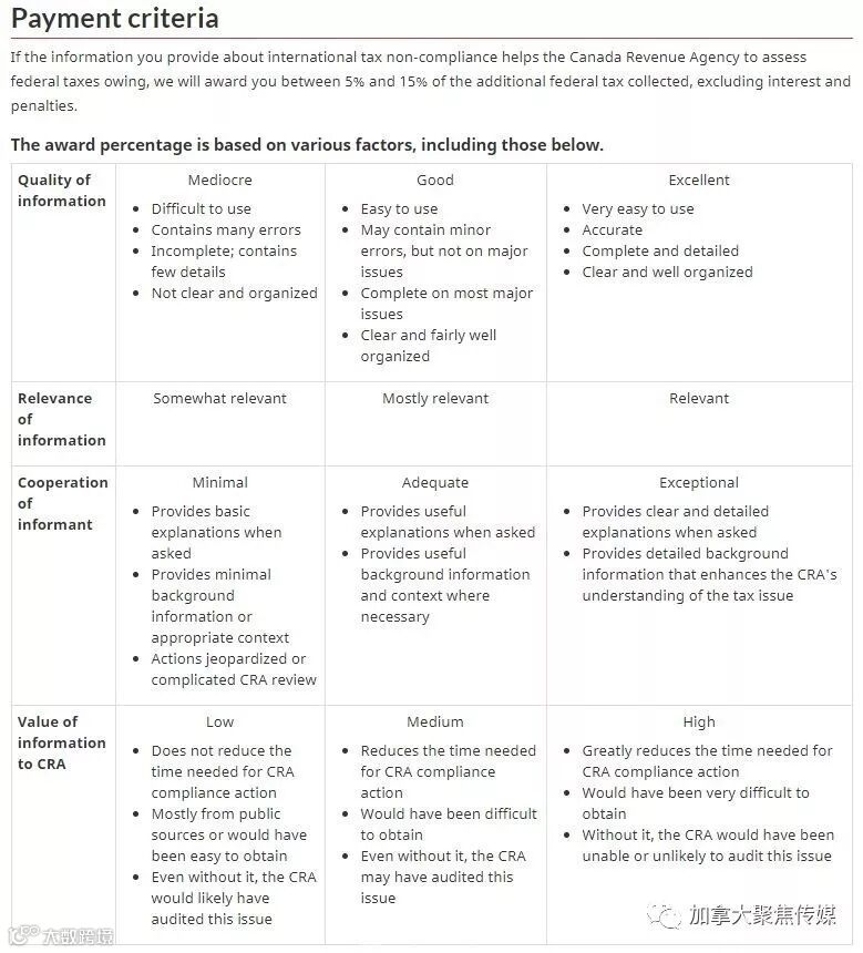 不过CRA表示,为了保护“打小报告”的举报人,CRA无法公布奖金的确切金额。
