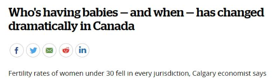 而加拿大妇女的生育率,自本世纪初以来发生了巨大变化,30岁以下的女性生育率大幅下降!