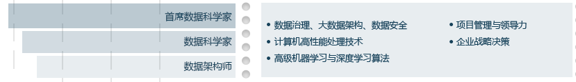 ★ 掌握更高级的前沿技术,包括计算机科学技术、高性能数据处理、大数据架构、机器学习、深度学习、数据治理、项目管理等;