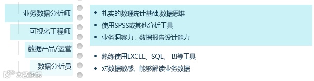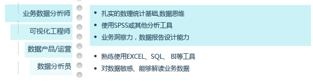 ▶ 互联网、零售、金融、电信、医学、旅游等行业,专门从事数据分析与数据挖掘的人员;