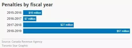 根据CRA的统计,在2015-2016,2016-2017财年,CRA所发现的虚假申报为1.69亿和1.61亿元。