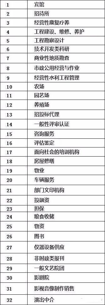 此次改革受到波及的事业单位主要有32类,如:工程建设、维修、养护,工程勘察设计,市政公用经营与作业,投融资,新闻媒体的印刷广告发行传输等经营部分,电影制片厂及其他各类公司(厂)等。
