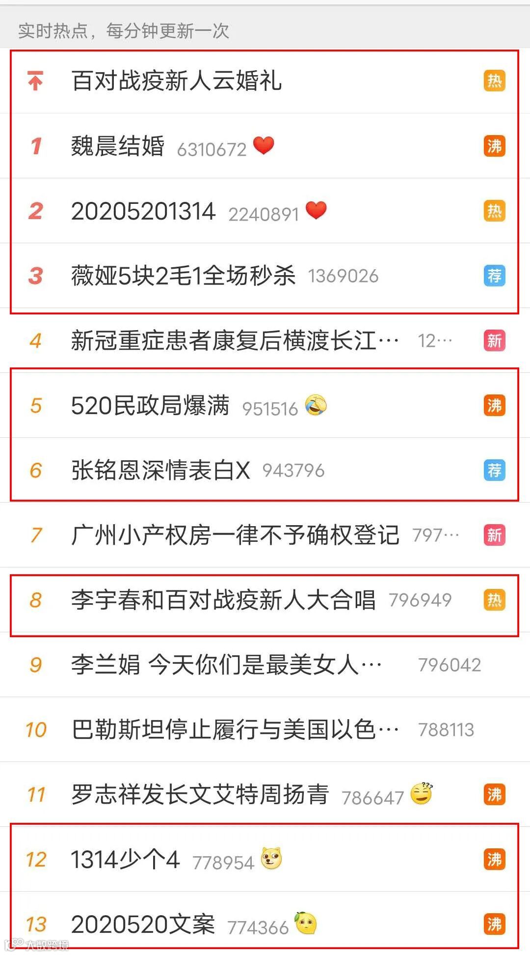 网上都是婚礼、告白、结婚等甜蜜新闻,微博排行榜上的蜜都要溢出屏幕了,520简直就是大型“撒狗粮”节日。