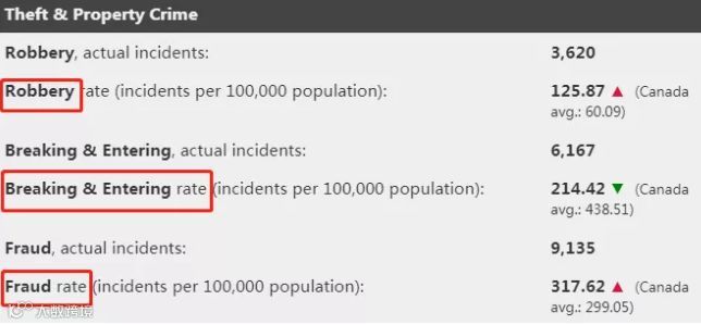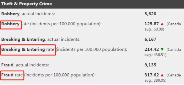 可以看到在Theft&Property Crime中,关于财产盗窃事件虽较去年有所降低且低于全国水平,但是发生率比起其他犯罪类型还是居高不下。