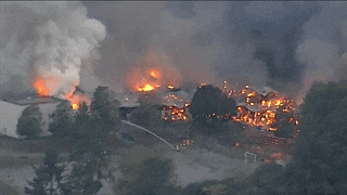 冲天的浓烟,被大火烧穿的屋顶……