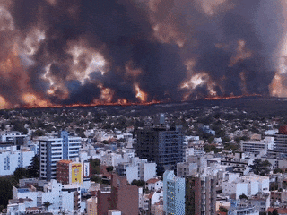 就在这周,阿根廷一场恐怖野火几乎摧毁了半个城市,大家看看这景象:满目的末日逼近感。