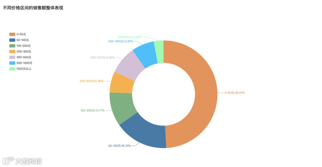 cut_labels = ['0~50元', '50~100元', '100~200元', '200~300元', '300~500元', '500~1000元', '1000元以上']