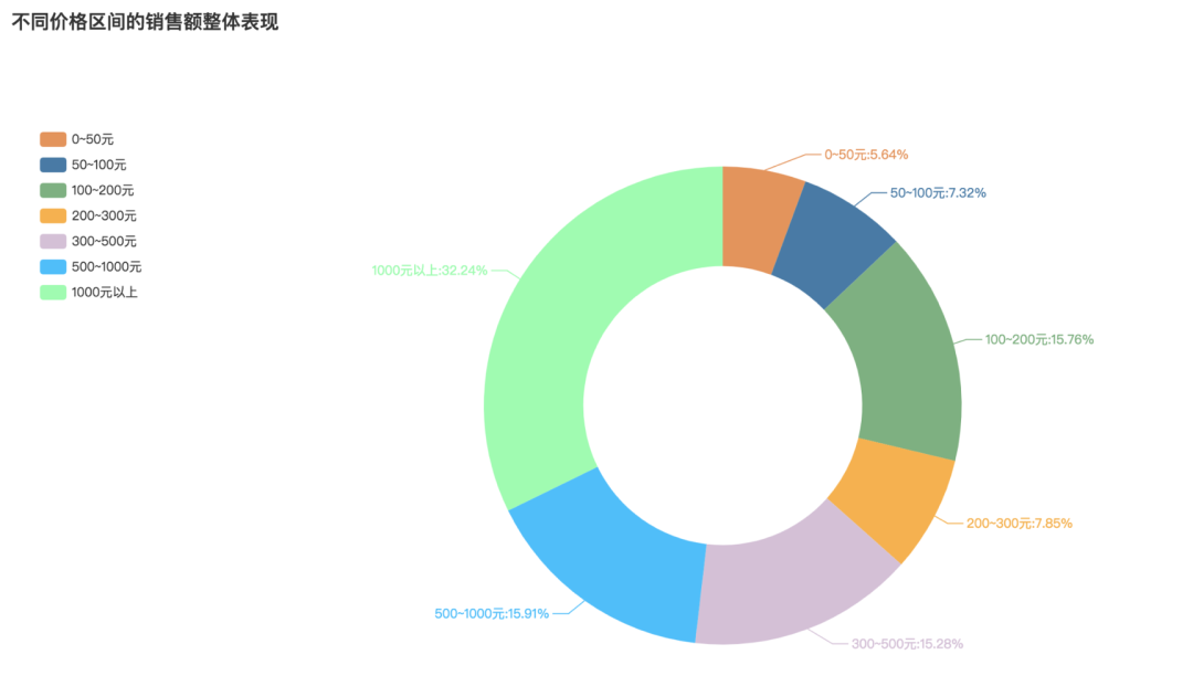 pie1.set_global_opts(title_opts=opts.TitleOpts(title='不同价格区间的销售额整体表现'),