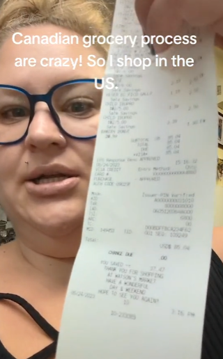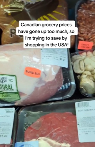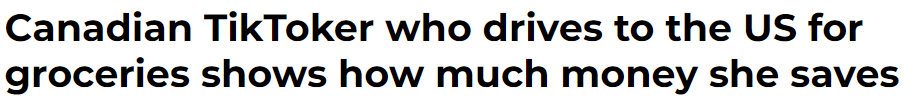 达斯汀在标题中这样写道:“加拿大的菜价简直贵上天了,所以我决定去美国买。”她在TikTok上的这段视频浏览量已经超过了50万次。