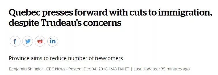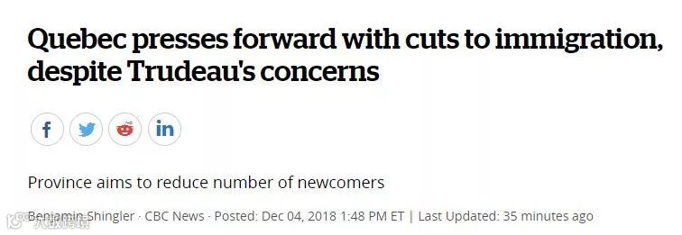 不仅如此,魁省政府还直接喊话特鲁多,要求联邦政府的合作,共用减少魁省移民数量。
